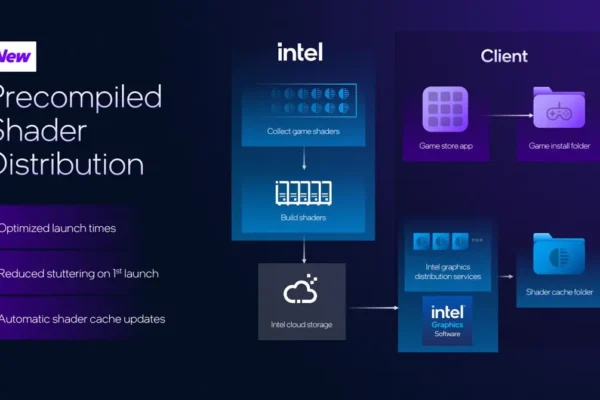 Intel lança recurso de distribuição pré-compilada de shaders para reduzir tempos de carregamento em GPUs Arc Xe2 e Xe3, melhorando experiência em jogos.